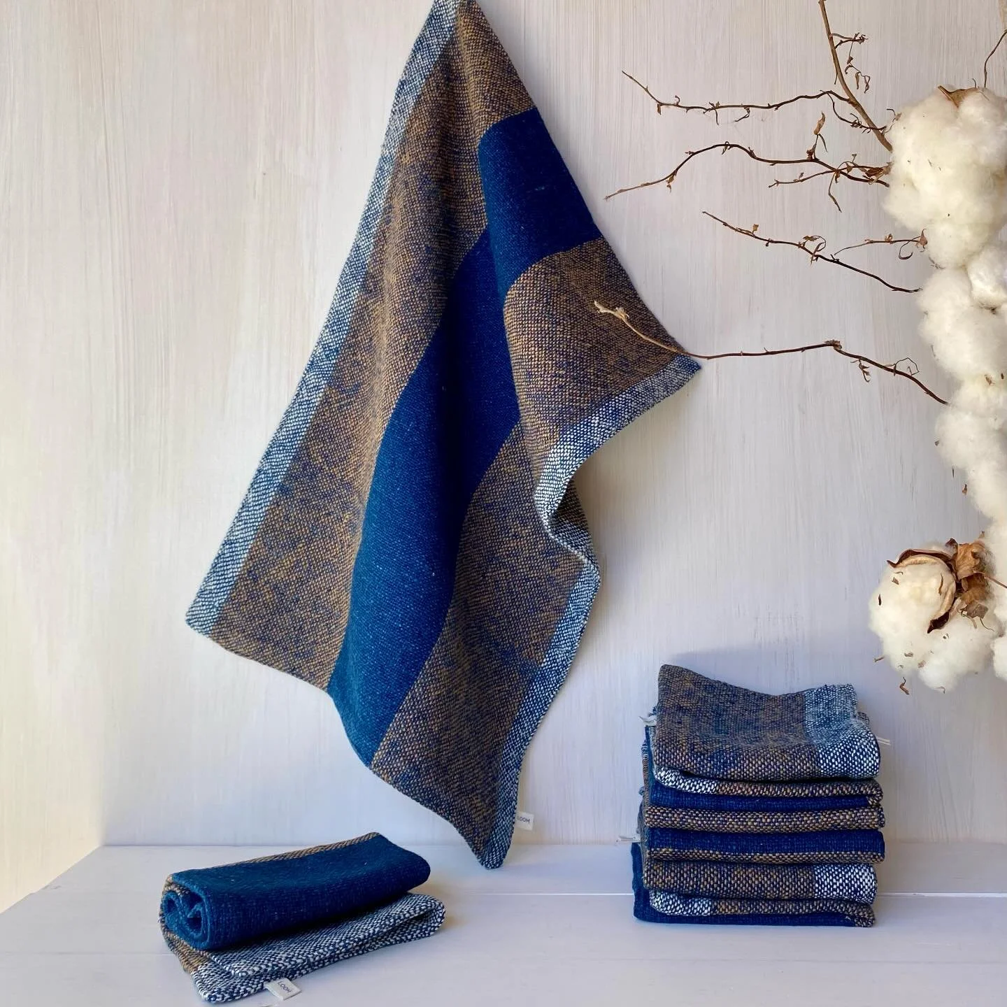 Hand Towel Indigo & Natural Cotton Check